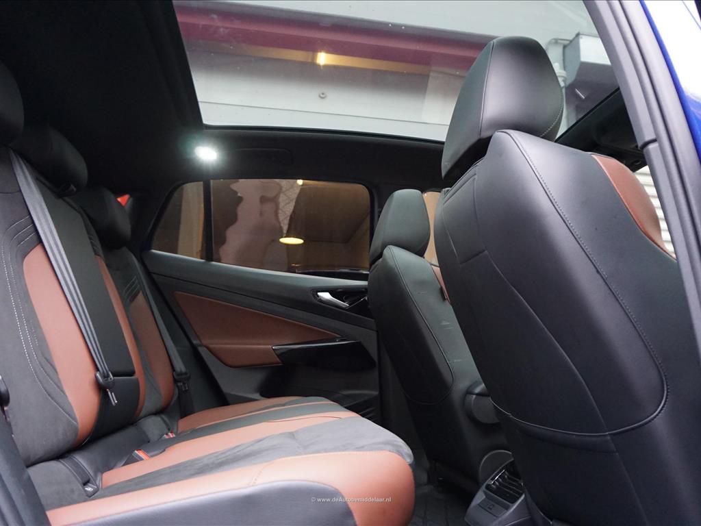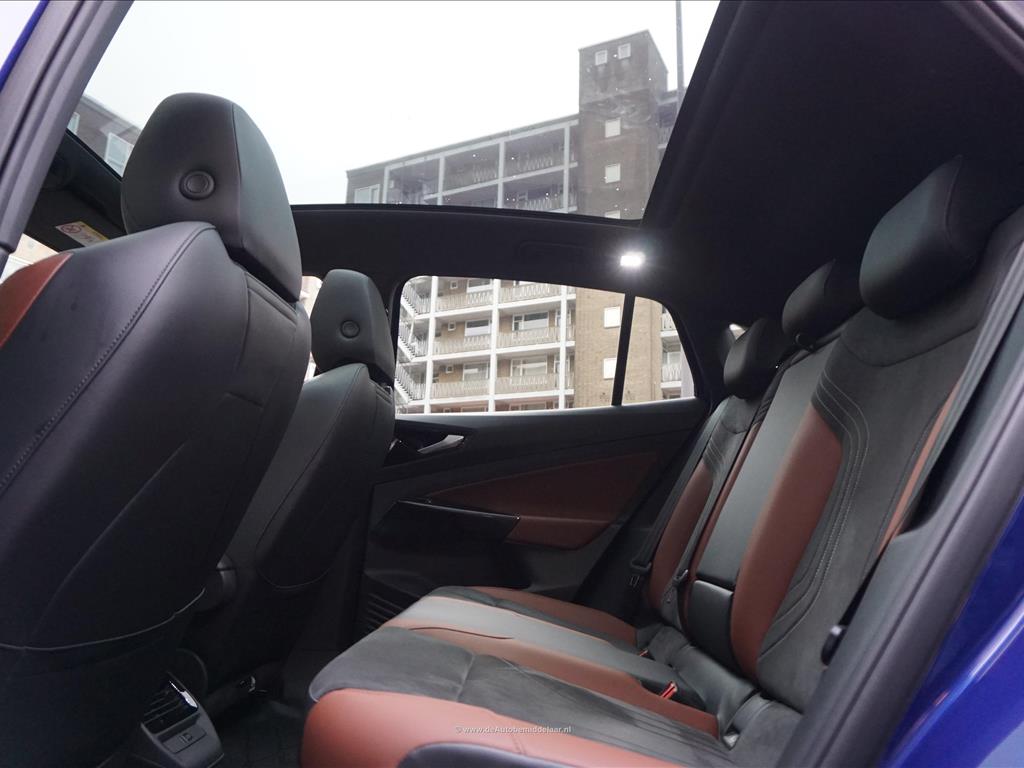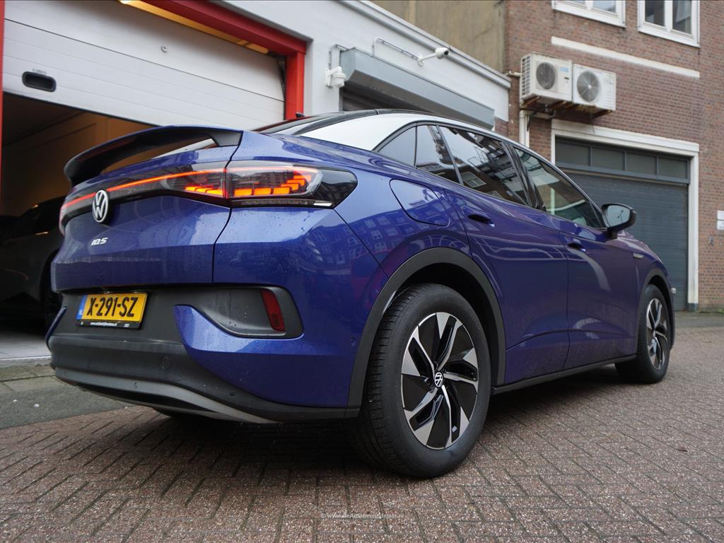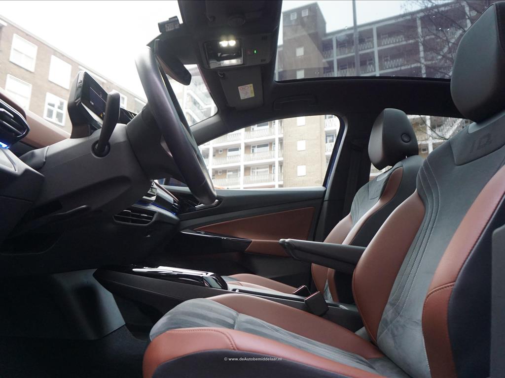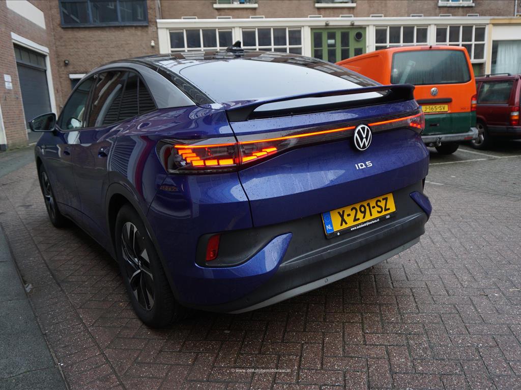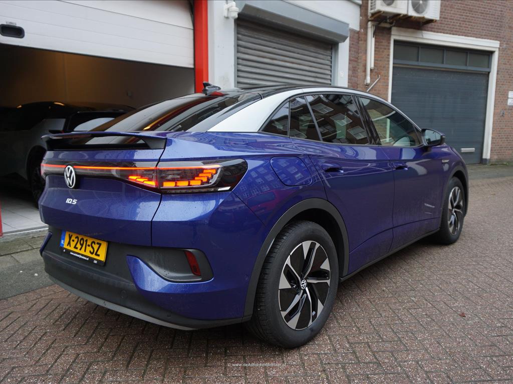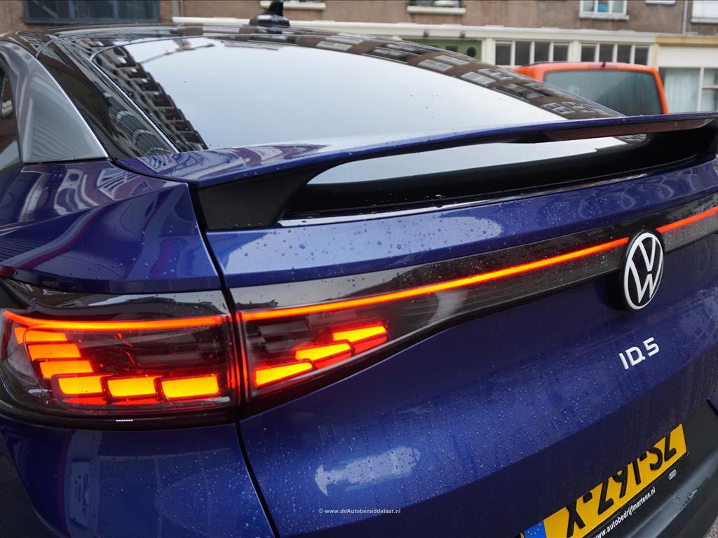 Rijkelijk uitgevoerde Volkswagen ID.5 77 kWh | Panoramadak | Adaptieve cruise control + lane departure met stuurcorrectie | MATRIX LED | 360 (TopView) camera | Lederen bekleding (velours middenbaan) | Sfeerverlichting | Stoelverwarming | Verwarmd stuurwiel | APPLE CarPlay/ Android Auto/ DAB audio/ Blue Tooth interface | Privacy glas achter | Dakspoiler | Afwijkende dakkleur (zwart) met zilver metallic daklijsten | Fabrieksgarantie 2-2028 | HV Batterij garantie 2-2031 of 160.000km | SOH 94.8% | achterbank in delen neerklapbaar, achterbank met armsteun en skiluik,